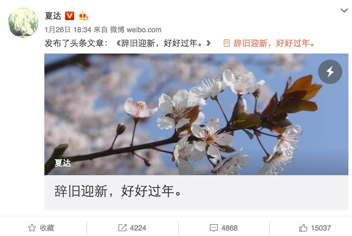 但随着临近除夕,夏达和姚非拉的撕逼也开始有了年味。先后表示:接下来得过春节啦,我们要消停一会儿,然后祝大家新年快乐云云。