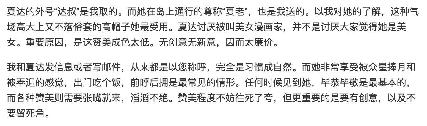 看过此篇长微博,除了get新八卦,群众还惊叹于姚非拉文笔之老辣精到。除了数据干货之外,不管是否真实,小到神态临摹,大到环境渲染,夏达白莲花的形象跃然纸上。