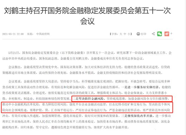 一是5月21日刘副总理在国务院金融稳定发展委员会上传达的会议精神。