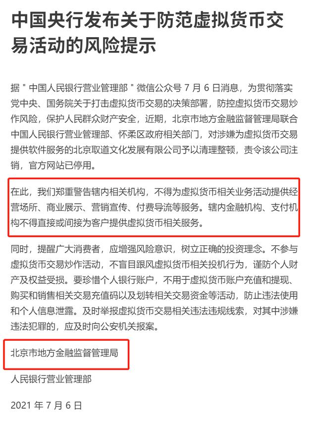 此次,央行还公开了整治典型。近期,北京市地方金融监督管理局联合中国人民银行营业管理部、怀柔区政府相关部门,对涉嫌为虚拟货币交易提供软件服务的北京取道文化发展有限公司予以清理整顿,责令该公司注销,官方网站已停用。