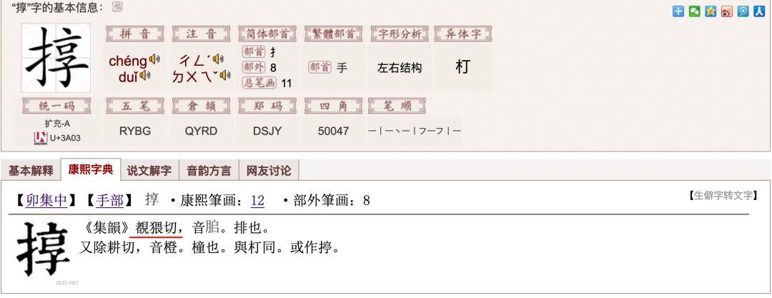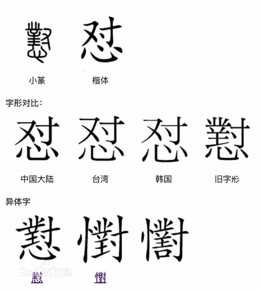 由此得知,其字形只收录于《康熙字典》,属于“孤证”,当不是本字,出现时间不会早于明中叶。经过越来越多的考证,其本字为“敦”《廣韻》“都回切”,而怼的本字为“憝”。有兴趣的朋友可以自行考证,在这里就不详述了。