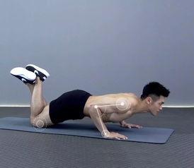 跪姿俯卧撑就是俯卧撑动作的进阶版本,也是一个非常强大的动作。一开始做这个动作时,我们需要俯身完成,我们先呈现跪姿在瑜伽垫上,让我们的大小腿呈现90度,这时候身体趴下去,使用我们的双手支撑我们的身体起来,这时候我们再开始做俯卧撑动作,手臂动作和标准俯卧撑动作是没有区别的。一次可以多完成几组动作,锻炼效果还是很不错的。