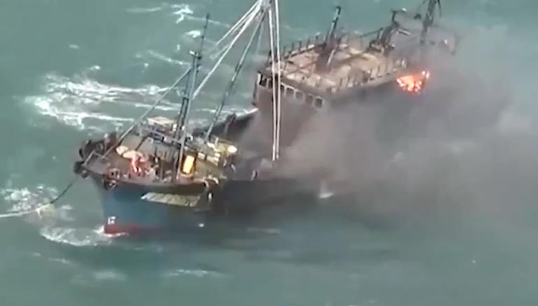当他们终于抵达现场,这时的船早已没有动力,在海面上飘来飘去。这无疑是增加了救援难度,再加上着火对飞机发动机也有影响,所以救援队被迫以一个比往常更高的高度来进行救援。这样救生员吊在空中摇摇欲坠,救援难度一升再升。若是一阵强风吹过,没准救生员就会撞到甲板上。