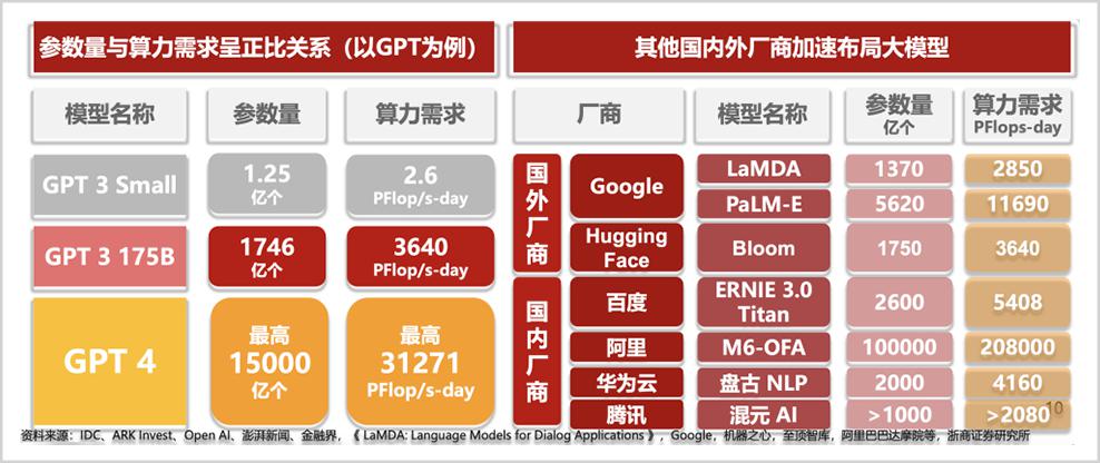 比如,ChatGPT-4 参数量最高达到惊人的 15000 亿个,而参数量与算力呈正比关系,可推算 GPT-4 算力需求最高达到 31271 PFlop/s-day。
