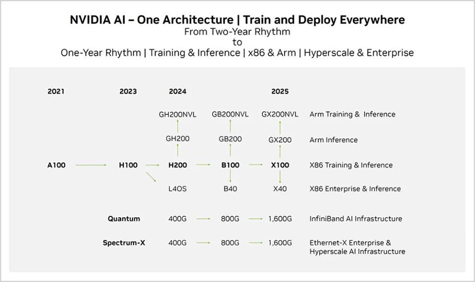 ▲英伟达数据中心 /AI 芯片迭代图,图片来源:智东西