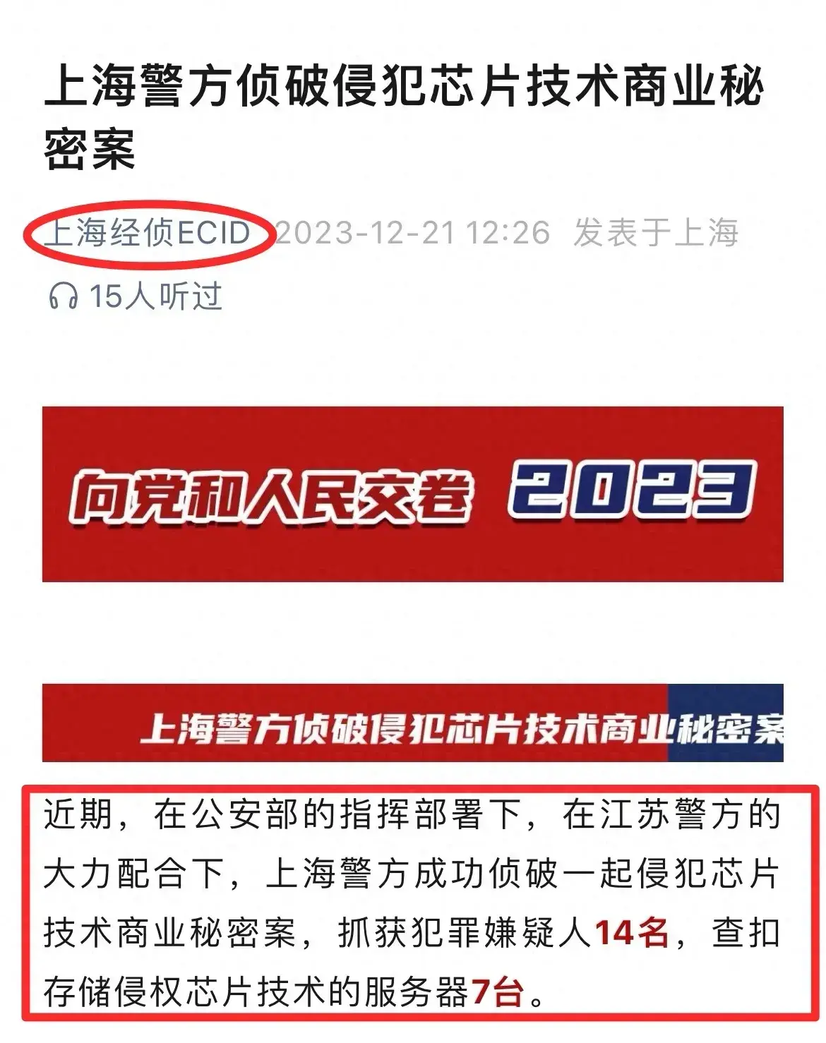 于是就有了今年12月份,也就是上周末的一则通告,尊湃科技公司涉嫌商业机密窃取等案件,对其创始人董事长等在内的14名企业高管及员工进行抓捕,并查封用于存储芯片研发数据服务器7台。
