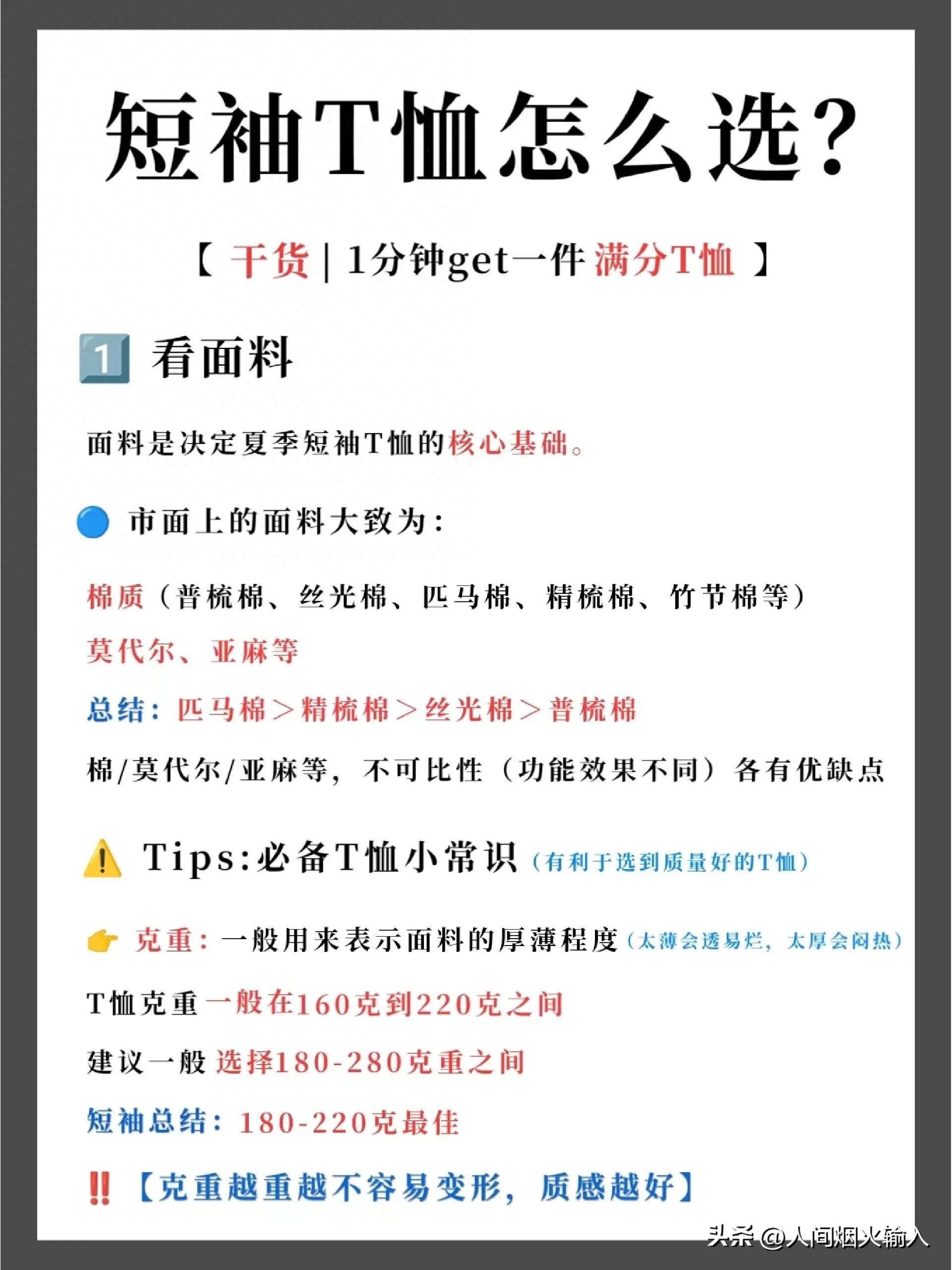 短袖T恤建议选择180-220g