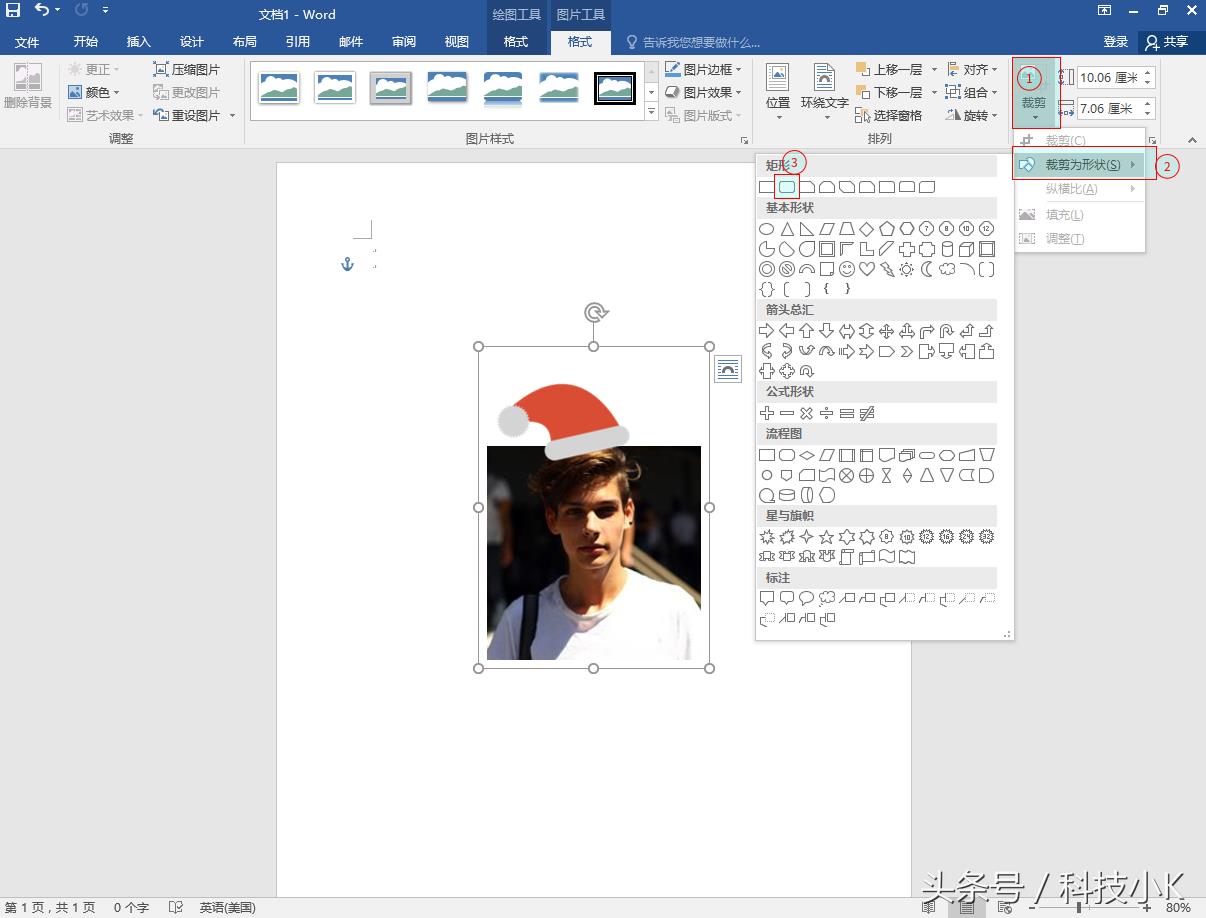 选择组合后的图片,选择格式-->裁剪-->裁剪为形状-->选择圆角矩形