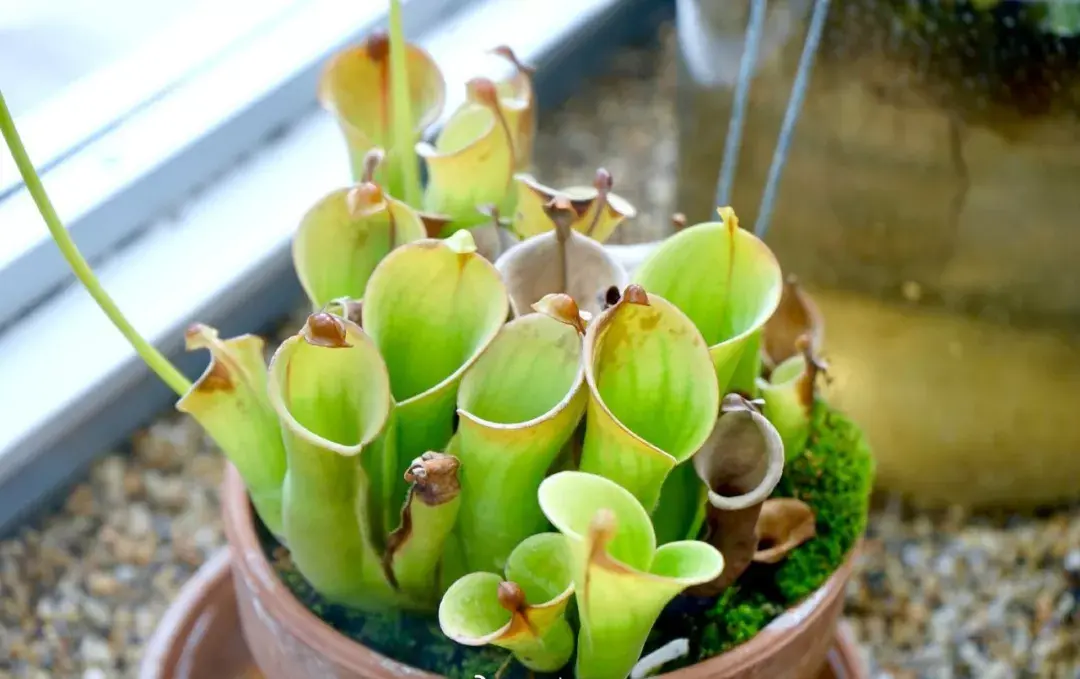 瓶子草喜欢晒太阳,在家养的时候要放在光照好的地方,大概1-2天就得浇1次水,保证盆土湿润,就可以让瓶子草越长越旺,捕食虫子的能力也就越强了!