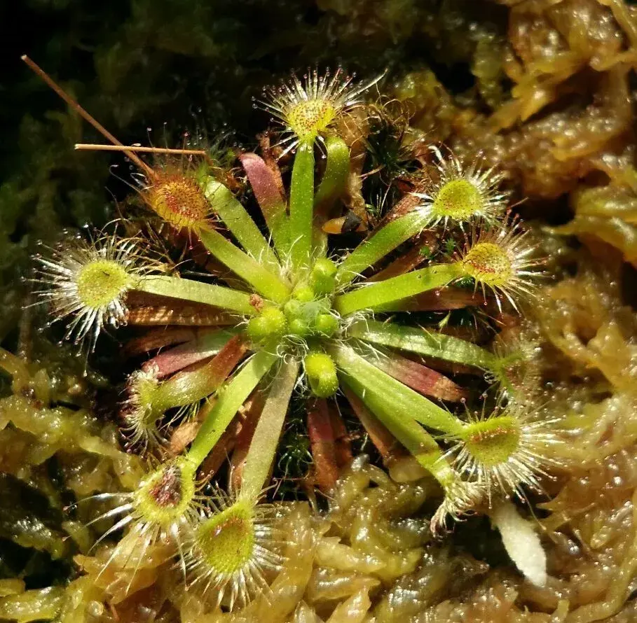 花花第一次看到茅膏菜的时候,还以为自己买了盆苔藓!它的叶子超级细小,看上去跟苔藓非常相似,不过比苔藓的叶片更加细小而已。