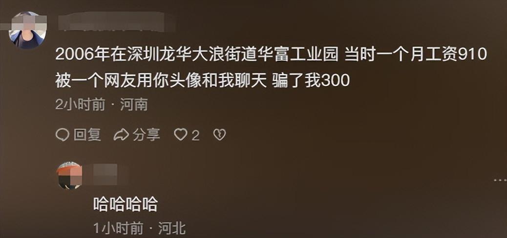 不知情网友因为轻信对面的网友,遭受惨重的经济损失,分享自己月薪只有900多块时,曾因为程琳的头像被骗300元。