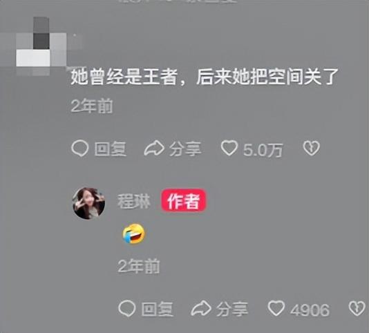 网友认为程琳曾经是王者,后来她把空间关了,程琳用一个表情回复这条评论,她的亲切和善不减当年。
