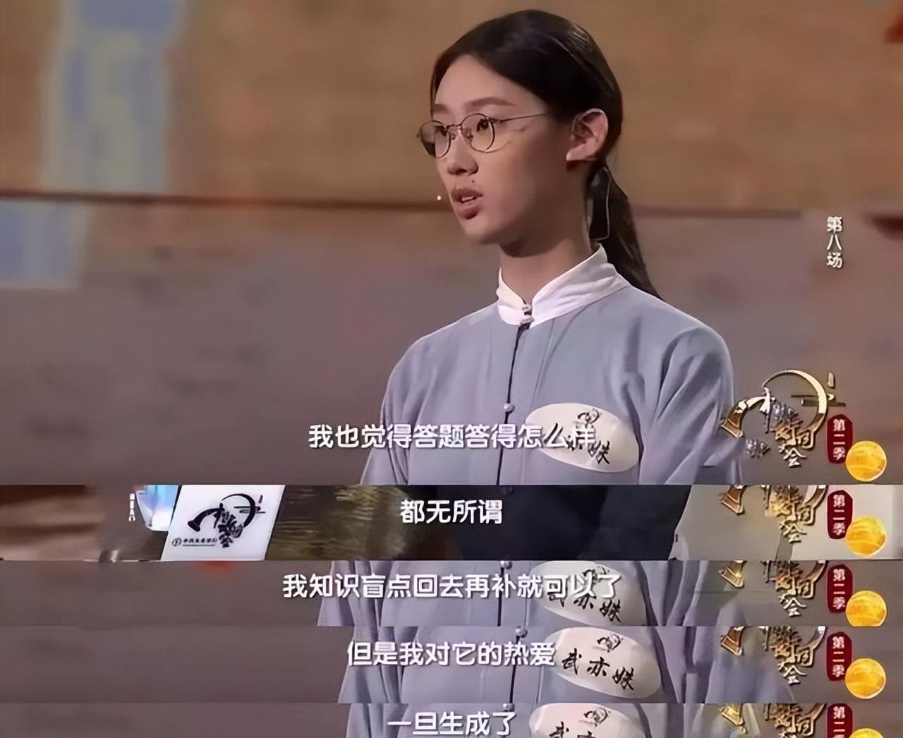 在研究诗词的过程中,成绩优异的她被保送北京大学,学起了智能机器人,成为了一个会做机器人的才女。进入北大后,她第一次报名参加了一档诗词节目《中华好诗词》,并在节目里取得了不俗的成绩。