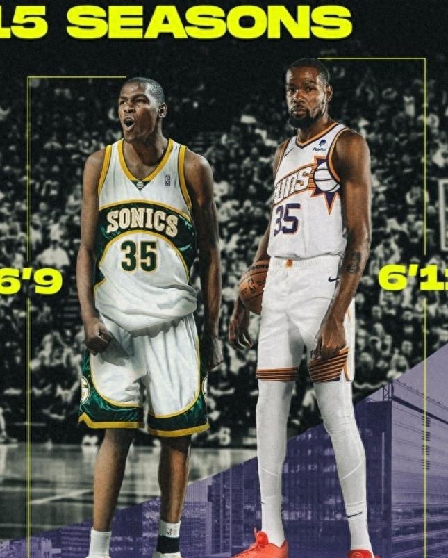 当初,杜兰特刚踏入NBA大门时,他的官方身高标定为2米06。不可否认,在那时候的他,虽然球技精湛,但和那些场上硕大身影相比,似乎有些显得黯淡。那个时候的杜兰特,仿佛还在经历一场身体的成长蜕变,但谁又曾想到,15年后,我们将看到一个不一样的杜兰特?