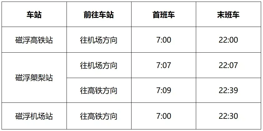 长沙机场磁悬浮时刻表
