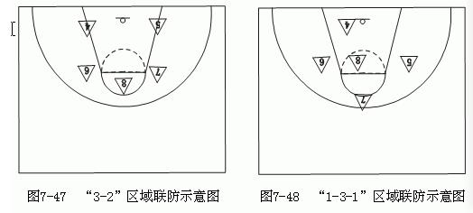 各种形式的区域联防都有一定的防守薄弱地区,因此,在比赛过程中,队员既要有区域分工,又要在某些特定的情况下暂时放弃没有威胁的局部区域,在危险区域以多防少,大胆地运用协防配合。
