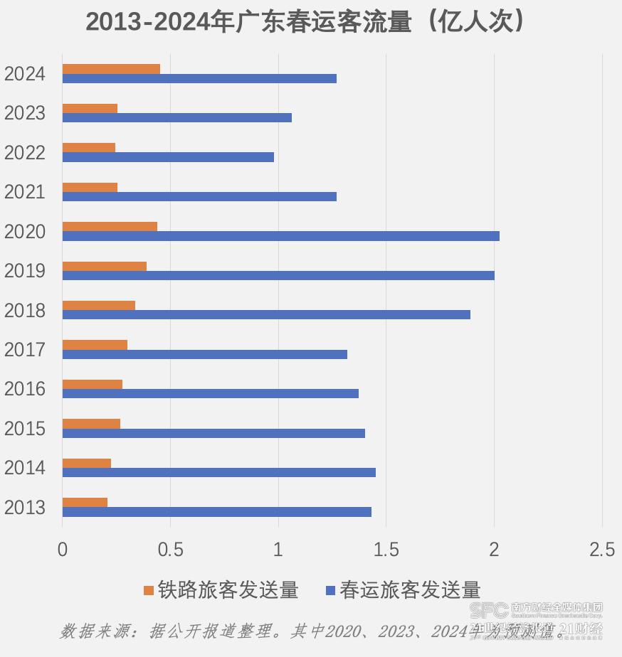 为期 40 天的春运于 3 月 5 日结束。据交通运输部消息,2024 年春运期间全社会跨区域人员流动量预计超 84 亿人次。其中,铁路客运量预计完成 4.8 亿人次。另据统计,广铁集团累计到发旅客 1.39 亿人次,创历史新高,成为历年来最火爆春运,约占全国铁路客运量的 29%。