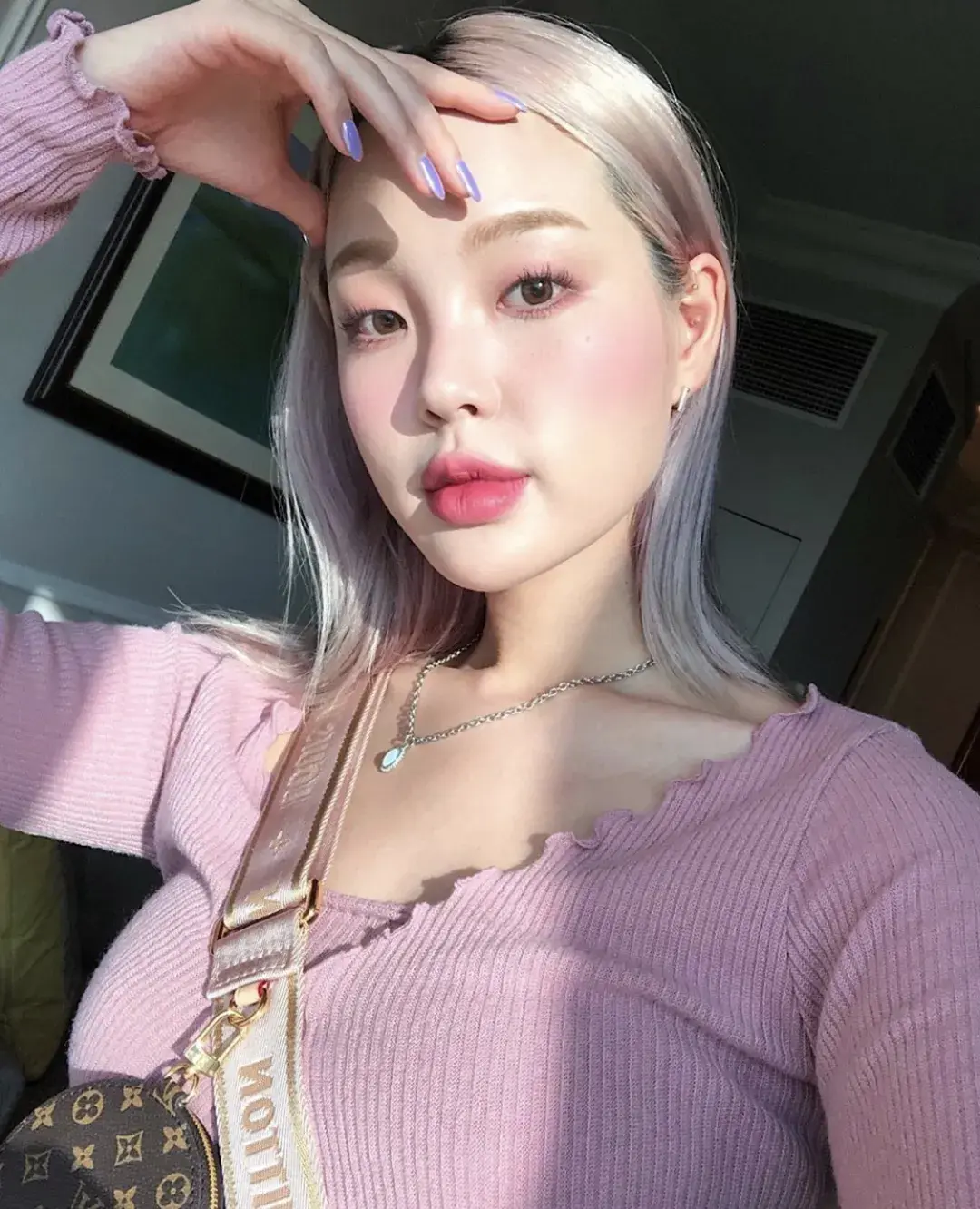 灰色系美瞳可以选择橘粉色营造松散浪漫的感觉,同样唇色要与之呼应