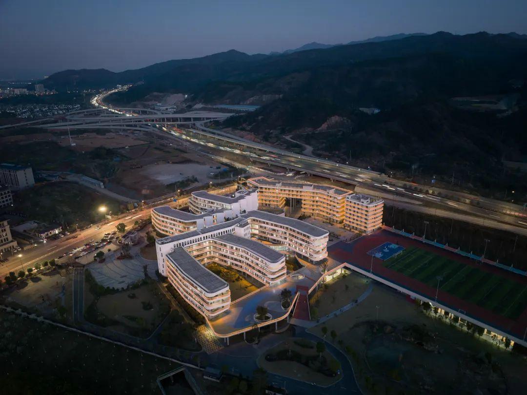 义乌市艺术学校新校区位于义乌市城南,总用地面积5.7万平方米。建筑主要功能为设有48班小学和12班中学的艺术学校。地形南高北低,地块东侧中部有一座十多米高的山丘,总体高差较大。