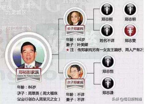 他的儿子、孙子、侄子、堂兄等数十位郑氏家族成员已先后入驻郑氏企业,不断巩固家族帝国。该家族产业涵盖珠宝业、酒店、百货、物流、电信、基础设施建设和金融服务等。