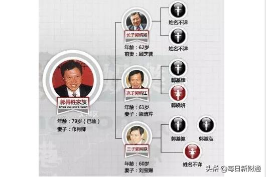 郭氏家族的家长是郭得胜,在2012年《福布斯》富豪榜中,郭氏家族位列第27名,净资产达183亿美元,郭得胜是新鸿基地产发展有限公司的创始人,该公司是香港最大地产发展商之一,也是香港拥有最多土地储备的公司之一,截至2011年12月,所占楼面面积约434万平方米,如今,郭氏家族开发的楼盘,包括香港最高的3座建筑以及香港最高的摩天大楼等。