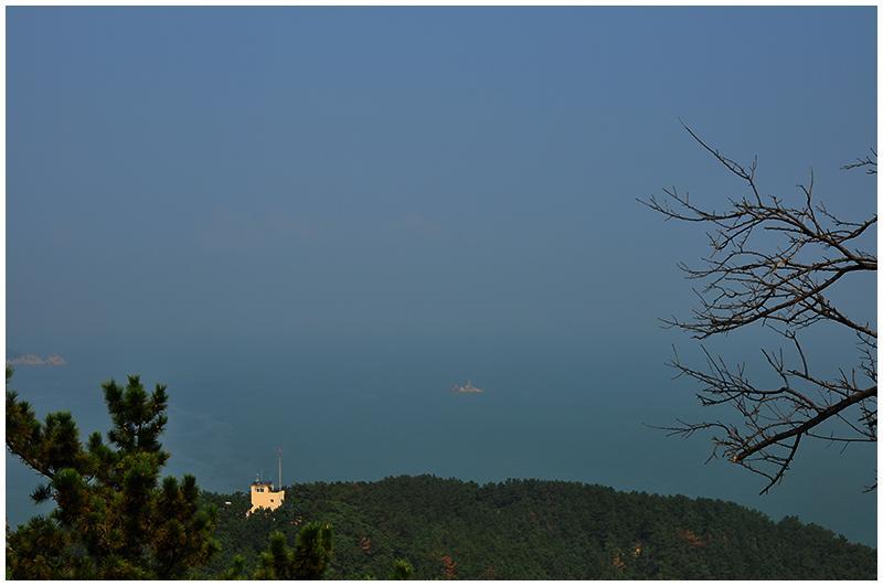 此时,海上的薄雾已经散去,蓝蓝的天空冲散了我心中的郁闷。想想下面直接上山去看旗顶山炮台吧。从刘公岛博览园可以乘坐索道车上到山顶,如果你体力好可以爬山上去。山不高,爬山上去与坐缆车上去用去的时间一样。我是自己爬上去的。