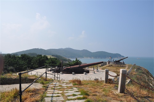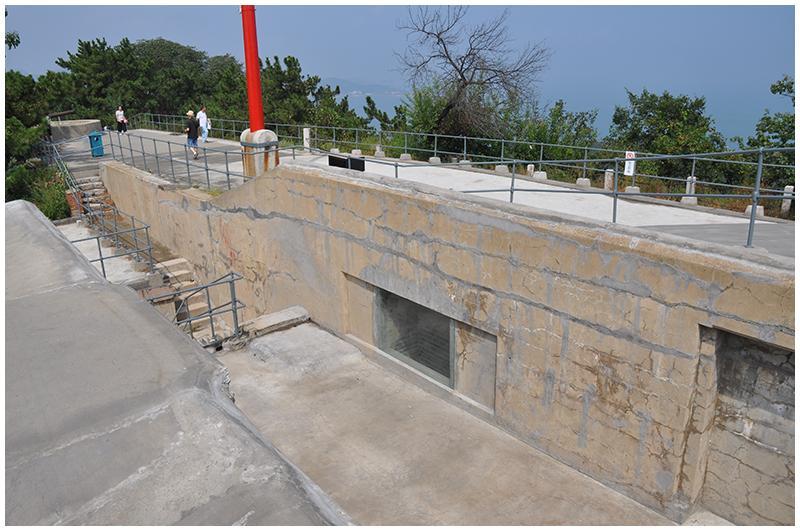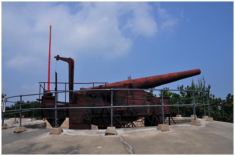 一到山顶炮台就展现在我面前,炮台规模很大,部署了两门德国造240mm克虏伯后膛装岸炮和平射炮4门。炮火力既可支援岛上其他炮台,又可与南北两岸炮台配合,封锁南北两海口。