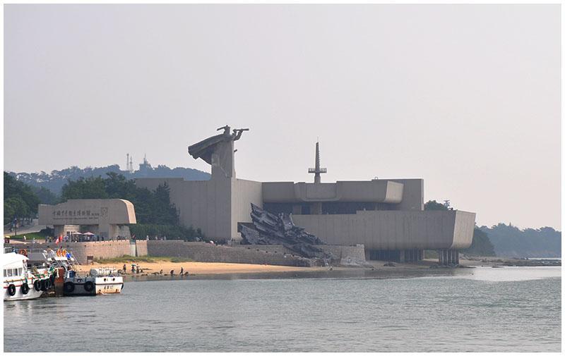 码头上刘公岛纪念碑,拍照留念!