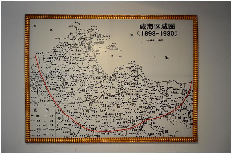 博物馆门口有一张威海卫布防图,我们可以看到刘公岛不但是天然良港,而且位置极为重要,与两侧海岸炮台组成的火网保护起了整个海湾。