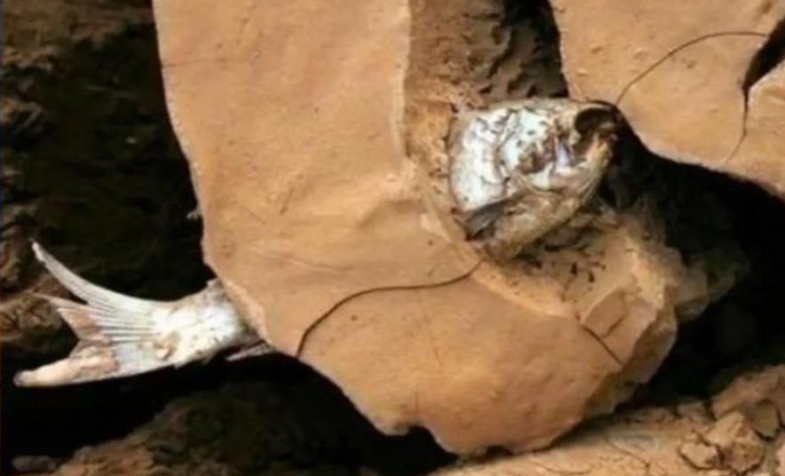 藏身于淤泥中的非洲肺鱼被封印在墙壁里