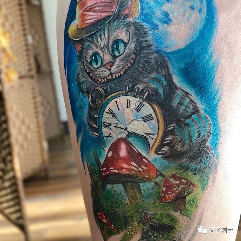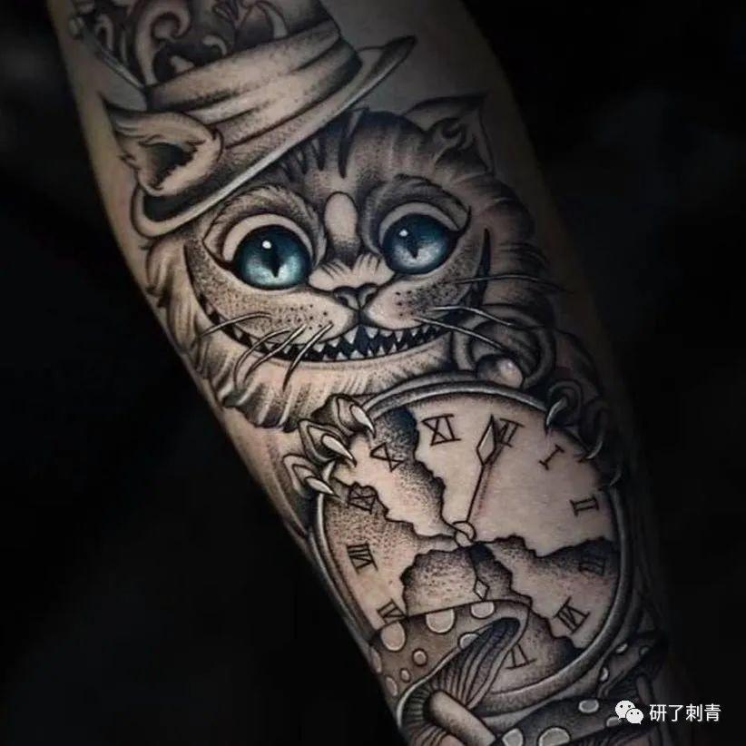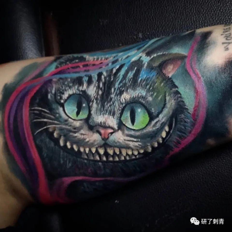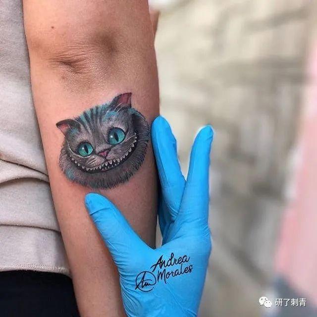 柴郡猫的微笑纹身同样也是向经典的爱丽丝梦游仙境之旅致敬的完美方式。