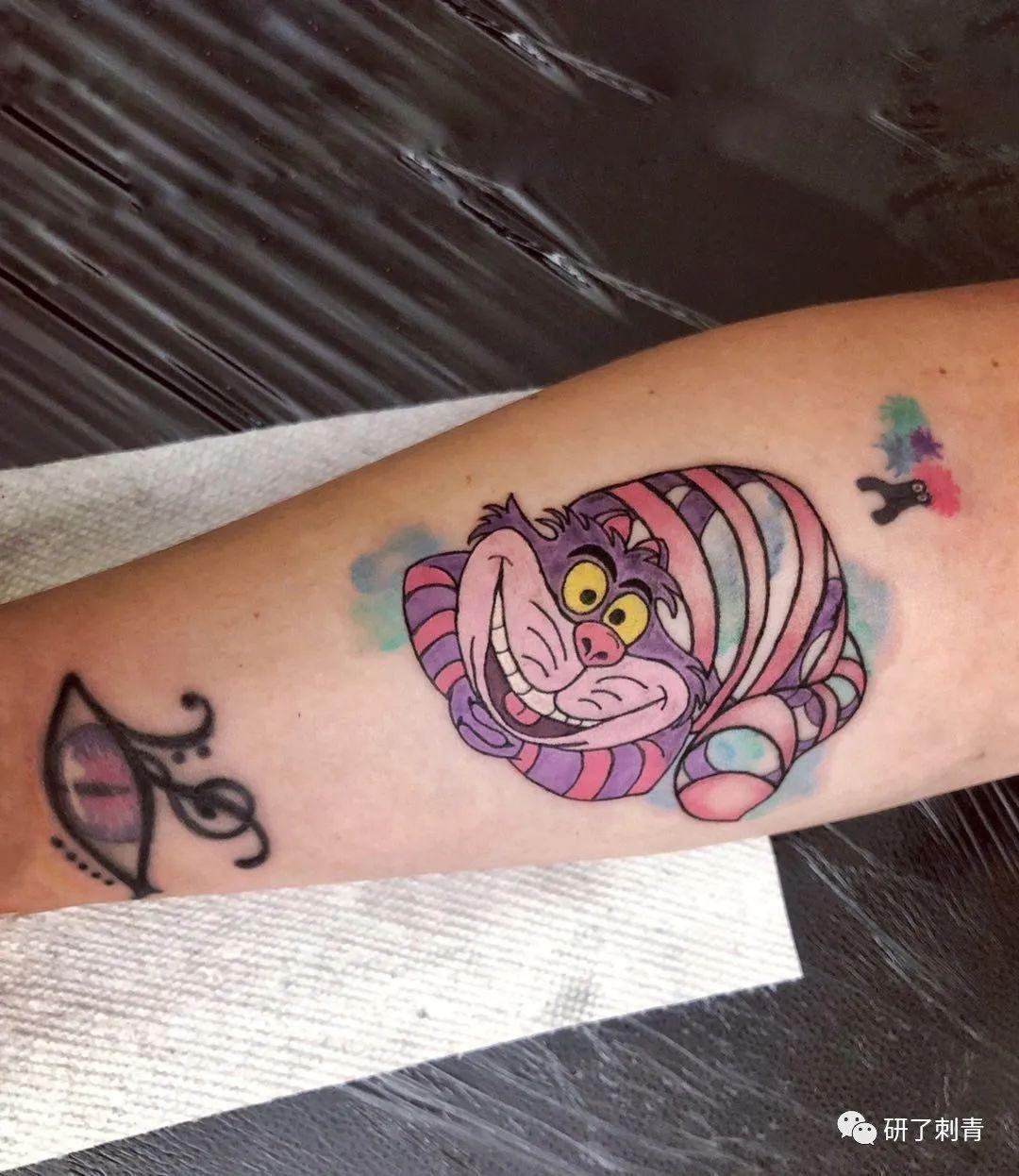 柴郡猫的纹身也可以作为一种指导符号,因为这个角色跟随着爱丽丝,并在她疯狂而又美妙的磨难中为她提供信息。