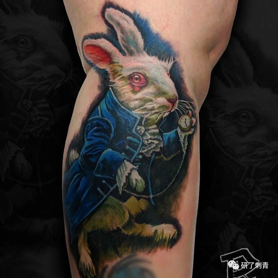 不论你喜欢古典风格的白兔插图,或者是更现代的迪斯尼卡通形象,《爱丽丝梦游仙境》里白兔先生纹身是一个经典的主题,充满了象征意义。