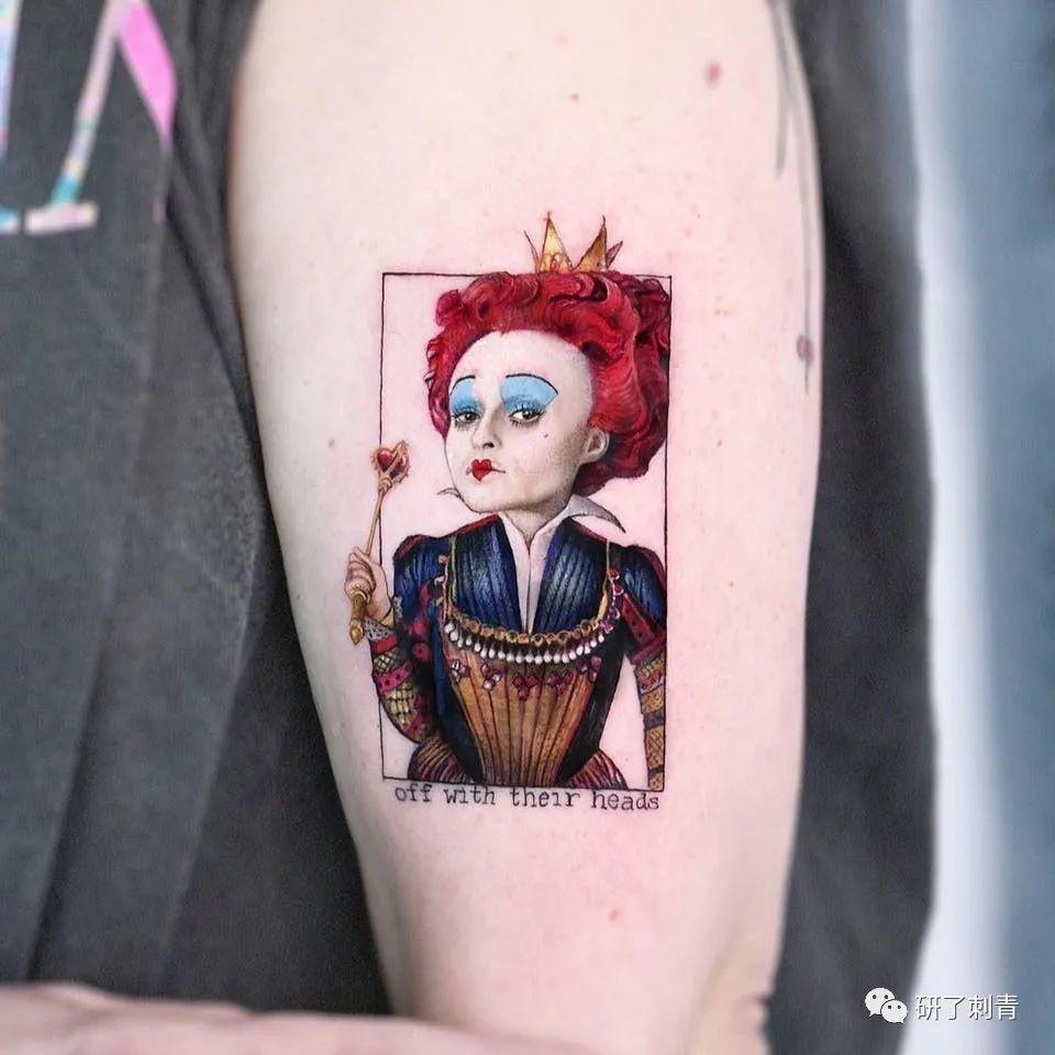 不管你是对Helena Bonham Carter扮演的红皇后的现实主义肖像感兴趣,还是你想要扮演著名的迪斯尼动画,红皇后的纹身都是爱丽丝梦游仙境中强大的象征。