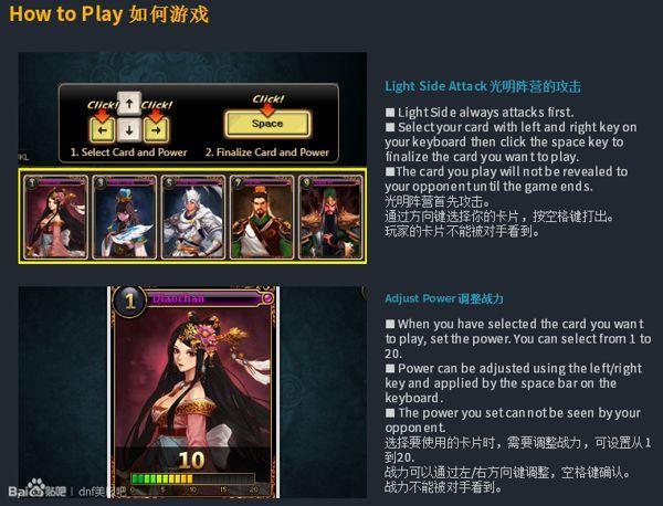 调整战力:选择要使用的卡片时,需要调整战力,可设置从1到20.战力可以通过左/右方向键调整,空格键确认。战力不能被对手看到。