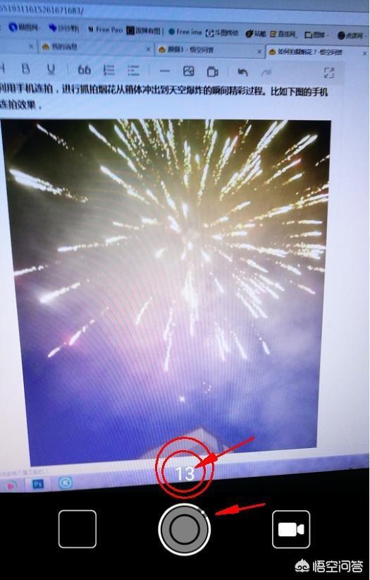 利用手机连拍,进行抓拍烟花从箱体冲出到天空爆炸的瞬间精彩过程。比如下图的手机连拍效果