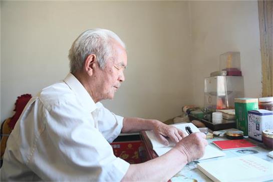 在李水清家的卧室里,桌子上摆着各种学习材料和报刊杂志,笔记本上写满了心得体会,自己所在党支部开展学习教育和党建活动,李水清的笔记就成了最生动的教材。“别看老前辈快90的人了,学习劲头比我们大,理论水平比我们高,还带着我们一起学。”张俊峰介绍,村党支部每个周都有党员活动日,李水清几乎一场不落,对于村里的发展,他提了很多有价值的建议。
