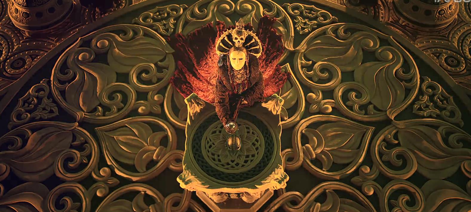 说是千年之前西域的精绝女王为了主宰他们的子民,反抗他们的人都会中一种会遗传短命的鬼眼诅咒。解除诅咒的唯一方法是要找毣(mu)尘珠和龙骨天书。