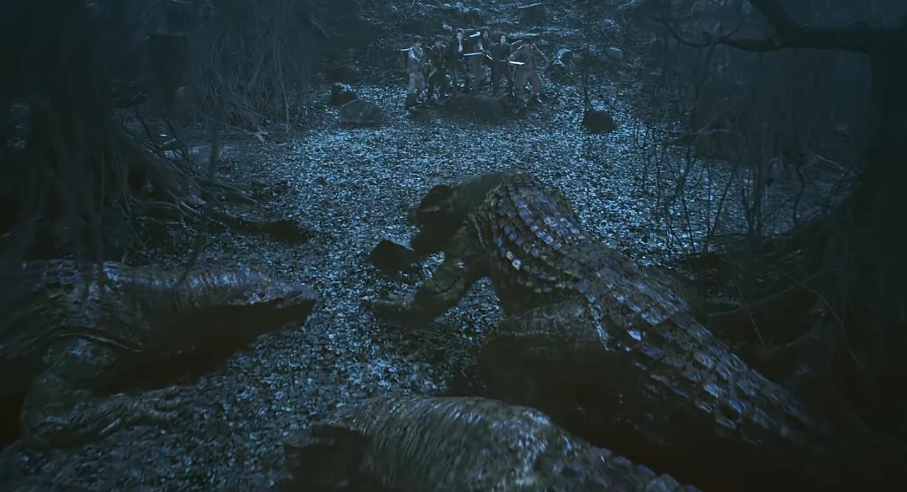 没错,那些怪物也惊呆了!他们竟然怕打雷的声音。小编表示不信,但是导演说,不管你信不信反正我是信了。好吧。暂且鳄鱼们也信了吧。