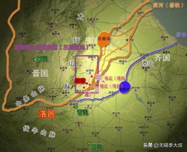 邶国、鄘国和卫国三国位置示意图