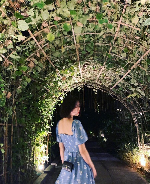李溪芮私底下的裙装真的很多呢,短发没有长发的飘逸却也能打扮出温柔女神,这件背后方领的蓝色碎花裙很好的诠释了李溪芮清新脱俗的一面,浅蓝色为主色和底色,白色小花布满在裙子上,mini小黑包也太好看了,但缺点是包包比较小,装不下手机大小的东西。