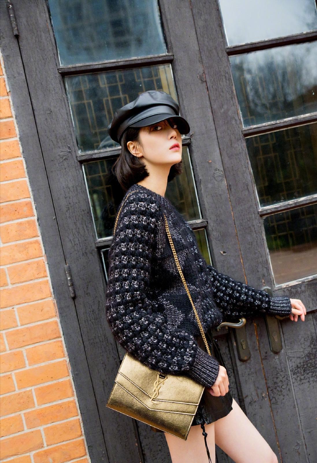 这件黑色毛衣的图案百变多样,袖子上的图案是黑白交织的格纹图案,而在衣身上交织出了菱格的图案,虽然是黑色但是穿上非常具有时尚感,贝雷帽斜戴着,制造出冷酷的气场,金色的ysl包包有种富贵的感觉,这款包的五金看上去的质感就很好,在价格上也许不是那么美丽,但有预算的姐妹们可以安排起来了!