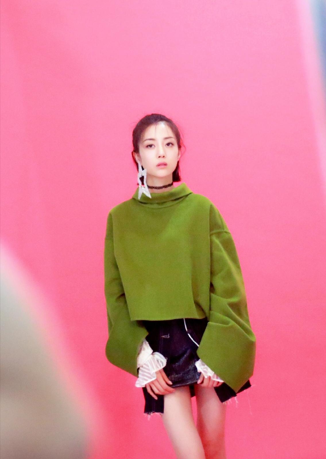 正在工作的李溪芮就不像街头那样随意啦,粉红色的背景和绿色毛衣看上去不是很搭,但这样的搭配给人视觉冲击,很特别啊!绿色毛衣袖口松松垮垮,肉多女孩的宝典里绝对少不了这件衣服,另外袖口的白色蕾丝又多了一丝纯洁无瑕,黑色不规则的裙子时尚感爆棚!