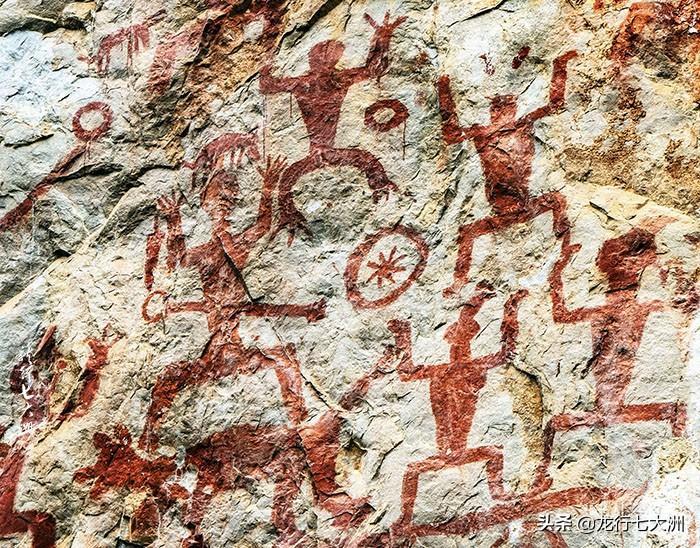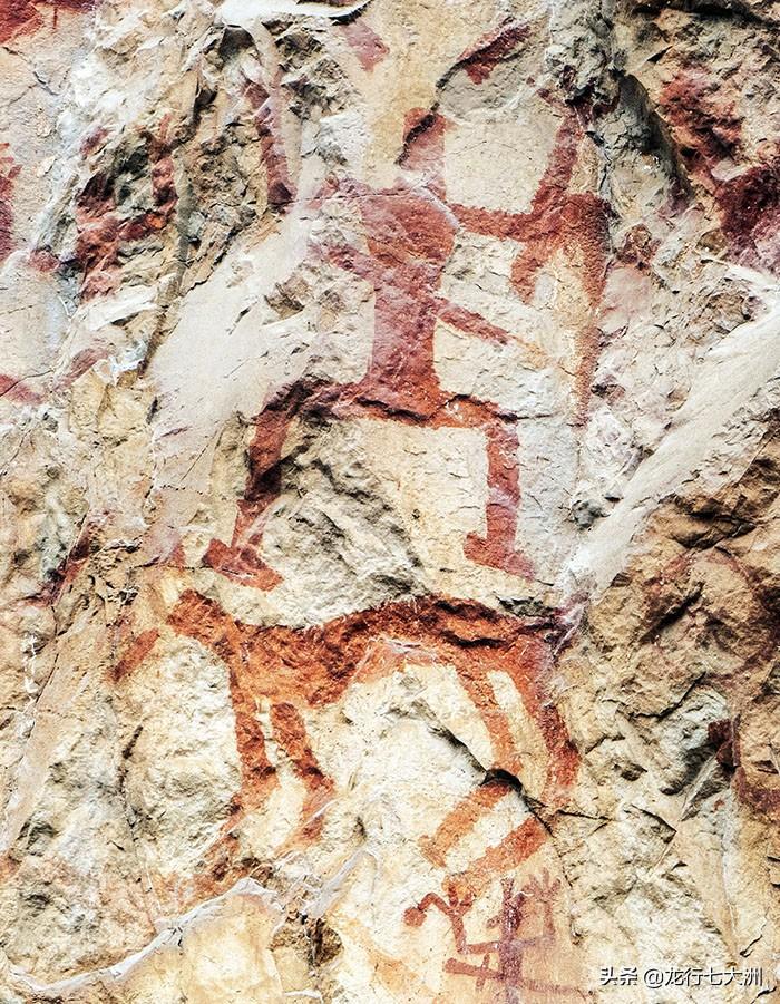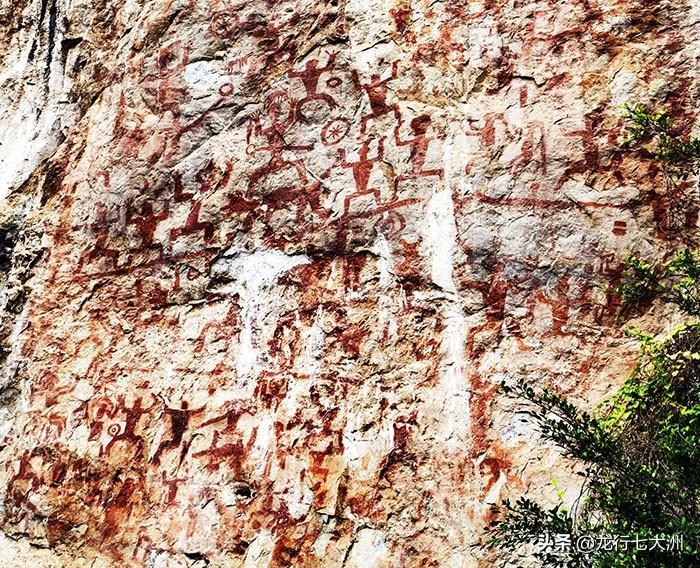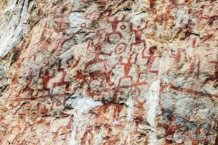 这里是中国乃至世界上发现的画面最大、图像最多的一处岩画,堪称世界岩画史上的珍品。可辨认的各种赭红色图像多达1800多个。