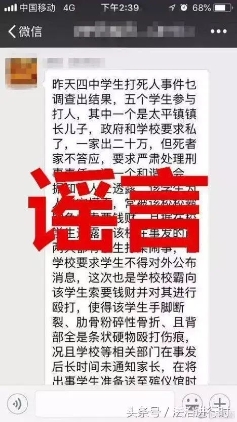 四中学生打死人?别再传了!多地网警已辟谣