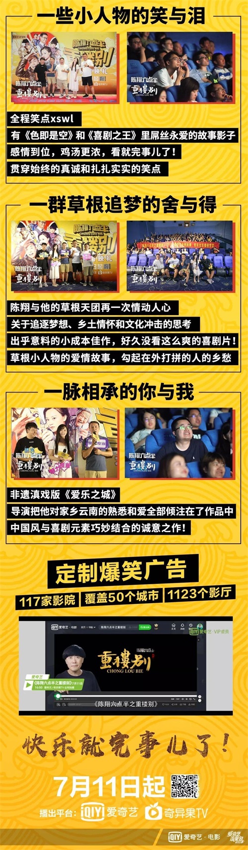 是的!前天【爱奇艺电影】在10座城市开展了13场《陈翔六点半之重楼别》线下观影活动,其中北京共三场,包括导演陈翔在内的主创团队均到场和观众互动。