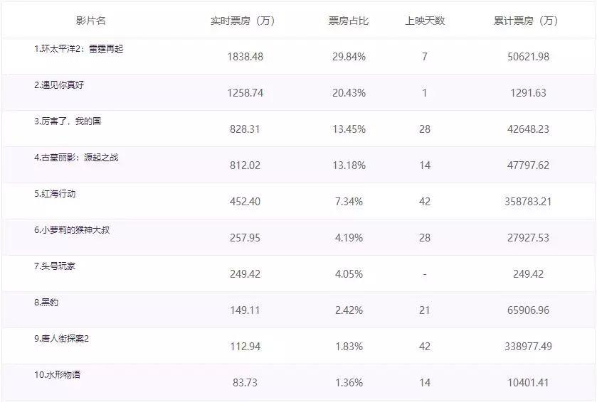 《环太平洋:雷霆再起》已经坐了一周的榜首,今天拿下一千八百万票房后,累计票房正式突破5亿!