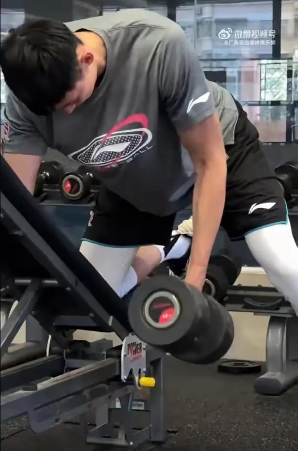 广东男篮晒周琦训练视频,单手举80斤哑铃,大魔王归来?