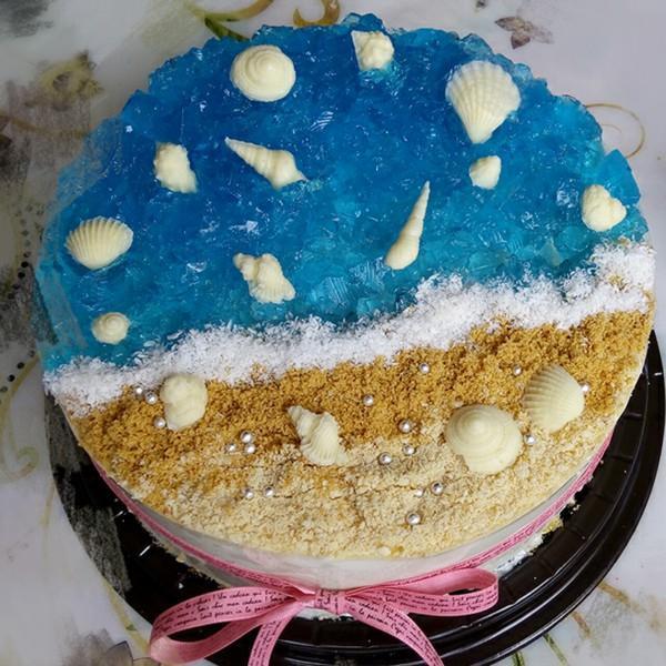 这是海洋慕斯蛋糕,是不是很好看,很有颜值,我觉得特别适合夏天吃,感觉有种铺面而来的凉爽,而且很好哟,上面蓝色的海洋是用很健康的食用色素做出来的,这种即美观又好吃的美食是在我的食谱种不可缺少的。