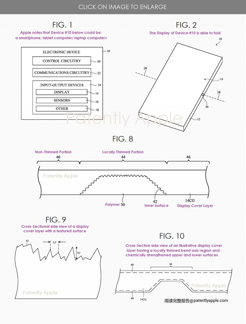 回到前文提到的那份苹果申请专利,专利内容显示这是一项在机身内置柔性显示屏中最大限度减少屏幕折痕的技术。